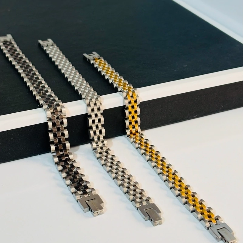 دستبند طرح رولکس استیل با کیفیت رنگ ثابت ضدحساسیت قابل کوتاه شدن و تغییر سایز