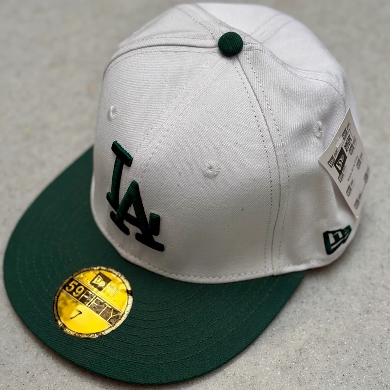 کلاه کپ برند New Era بسیار با کیفیت مستر کوالیتی دوخت طرح LA ظریف و با دقت ترکیب رنگ سبز و سفید خوش استایل مناسب همه سایز سر